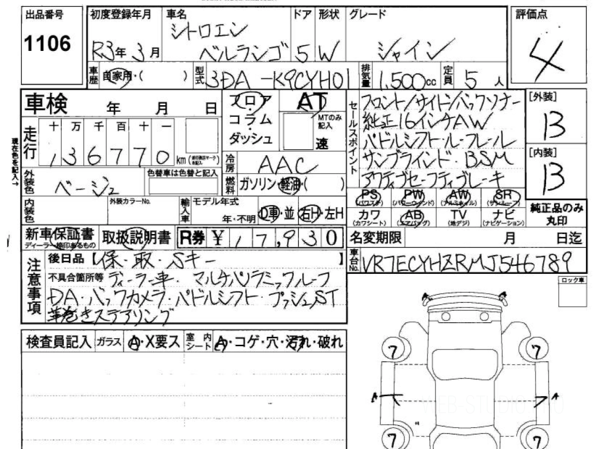 Цена на CITROEN BERLINGO K9CYH01 2021 с аукционов Японии зависит от состояния авто и комплектации, указана с расчётом пошлины, всех расходов с учетом доставки во Владивосток.