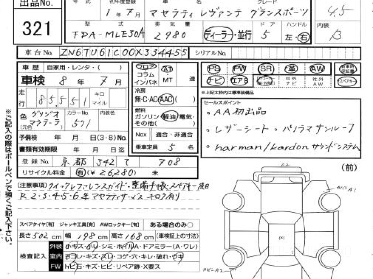 Цена на MASERATI LEVANTE MLE30A 2019 с аукционов Японии зависит от состояния авто и комплектации, указана с расчётом пошлины, всех расходов с учетом доставки во Владивосток.